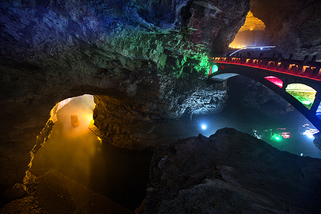 天仙橋:連接黃龍洞第二層和第三層的通道,也是目前國內(nèi)開發(fā)的溶洞中規(guī)模最大的一座石橋。